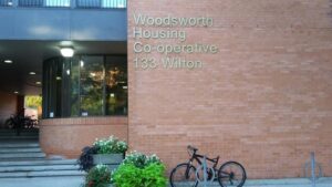 Woodsworth Housing Co-operative is located in the historic St. Lawrence Neighbourhood in Toronto, Canada, close to St. Lawrence Market. Woodsworth is within walking distance of shops, services, schools, community centre and pool, public library, parks, and Lake Ontario. Bus routes go to subway stations and it is a short walk to the King streetcar and to Yonge Street. We are also walking distance to Lake Ontario, Sugar Beach and East Bayfront.